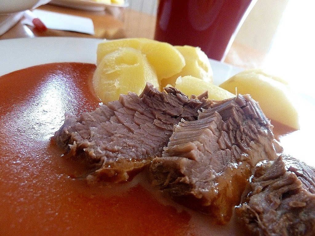 2. Dostatečně provaříme (minimálně 20 minut) a je-li potřeba dochutíme solí, cukrem…. Omáčku přecedíme a podáváme s vařeným hovězím masem nakrájeným na tenké plátky přes vlákno a klasicky s kynutým knedlíkem nebo jako já s brambory.