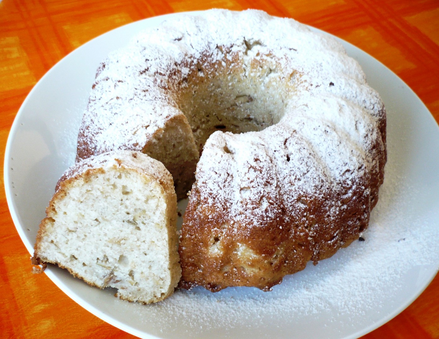 Nejdříve smícháme sypké suroviny, do nich přimícháme zbytek (ani nešlehám, jen promíchám vařečkou) a nalijeme do formy (můžete vysypat i klasicky moukou).