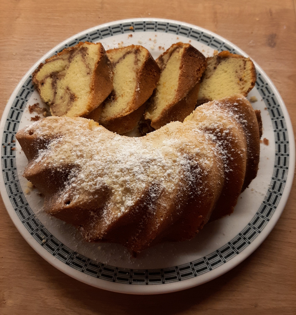 Dáme do vymazané a vysypané bábovkové formy a pečeme asi 3/4 hodiny při 150 stupních.