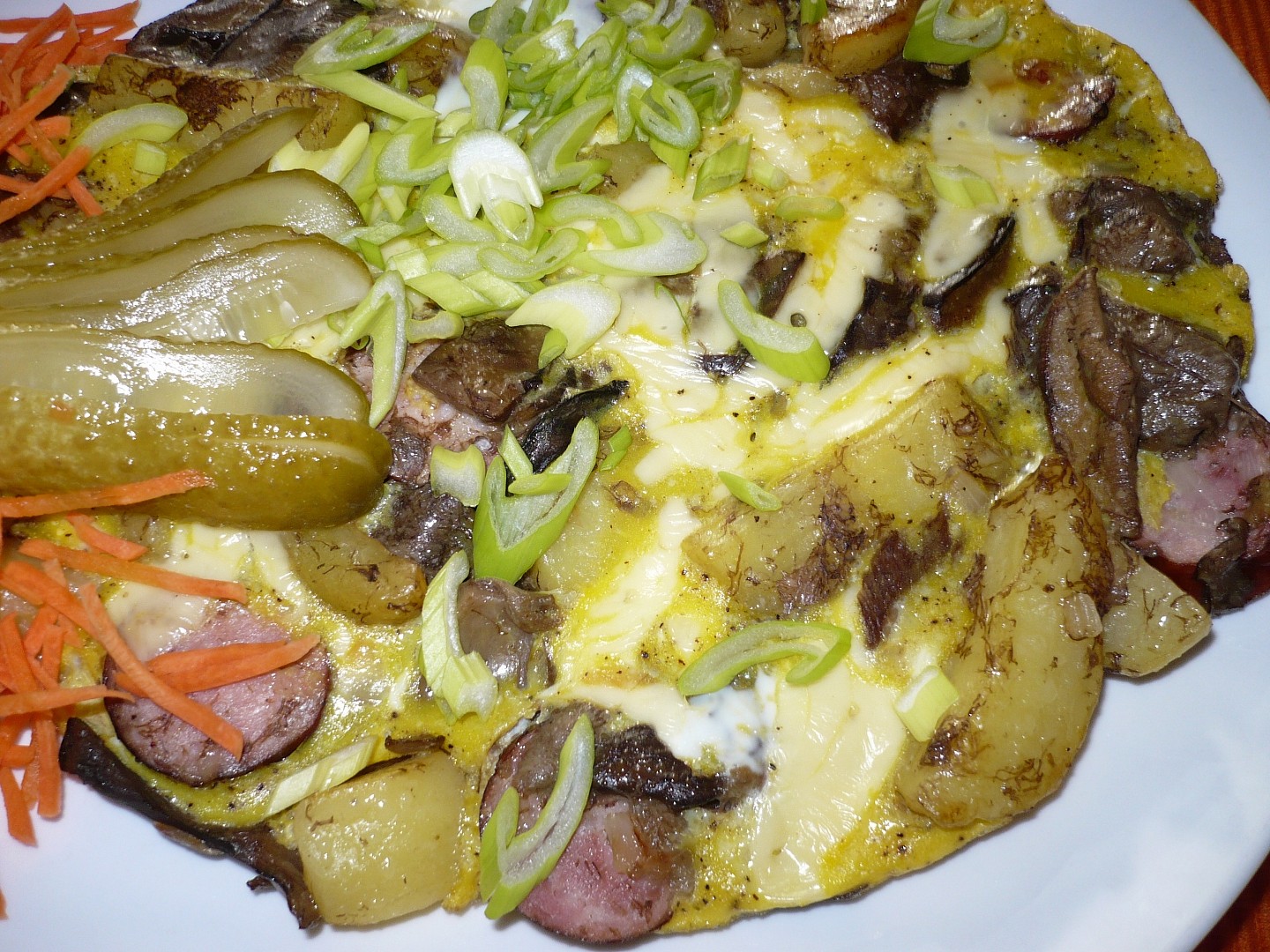 Dá se taky udělat amoleta bez brambor a ty podat vařené jako přílohu. Houby jsem použila sterilované, recept je tady