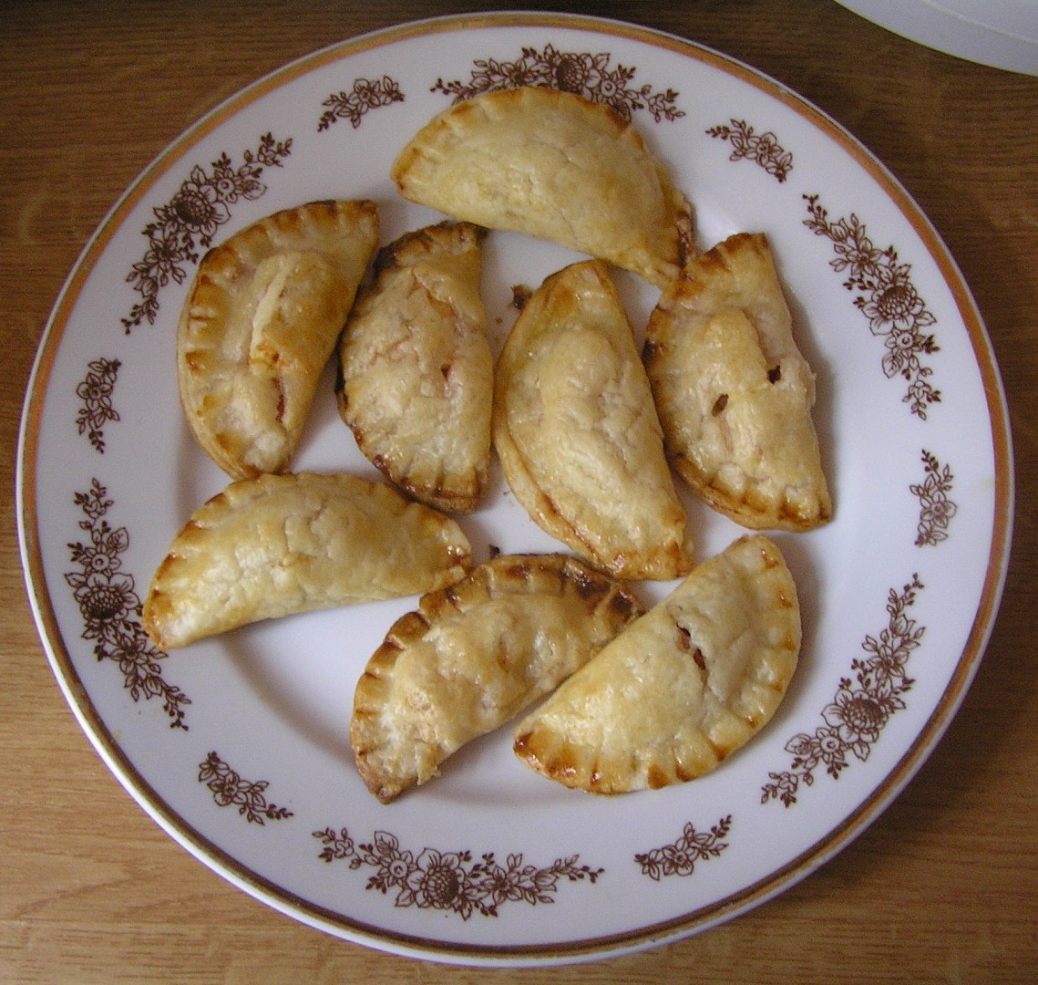 3. Taštičky pokládáme na plech a potřeme je vajíčkem, dáme do předem vyhřáté trouby a pečeme asi 5 minut. Do zhnědnutí.