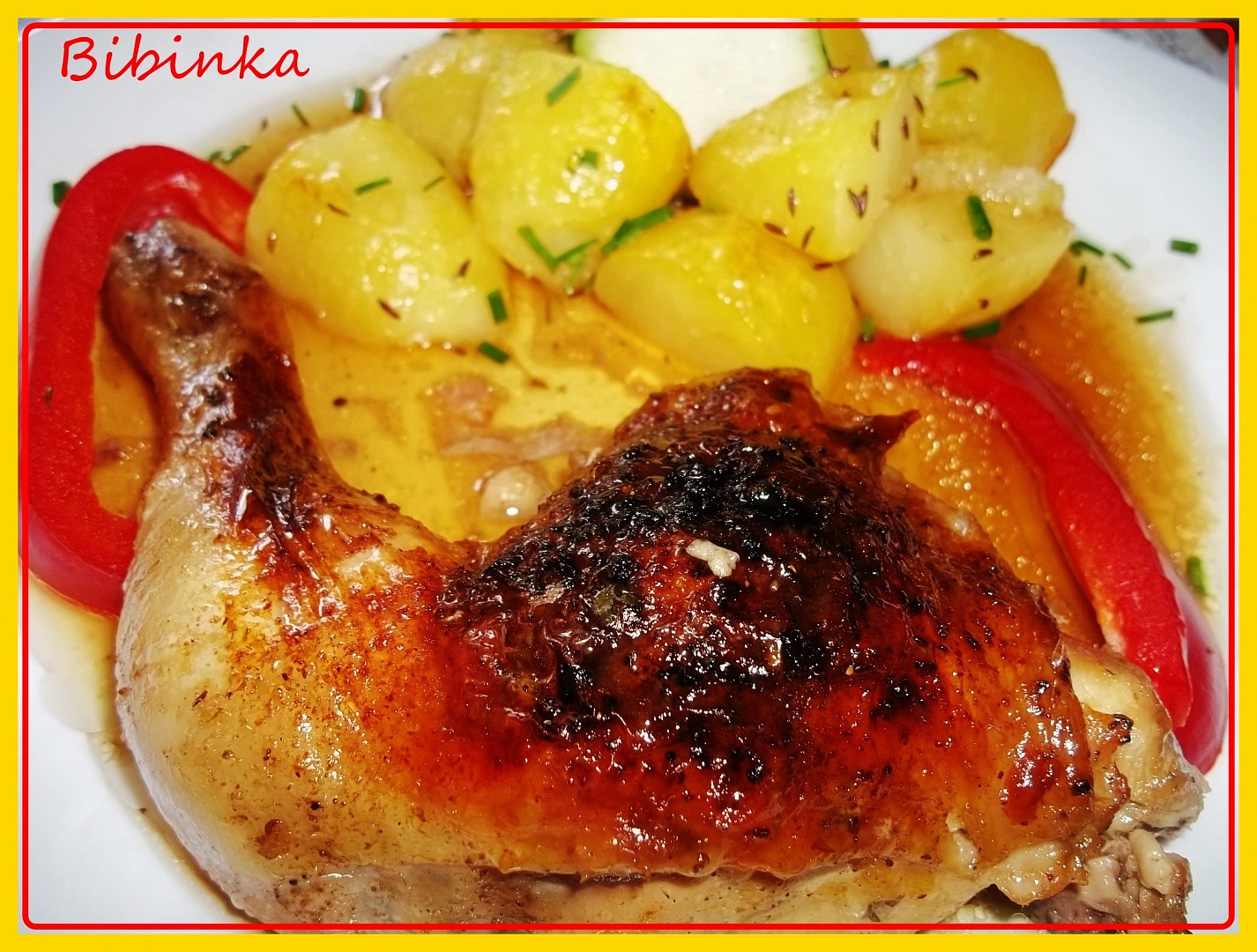 Pekáč už nezakrýváme a necháme péct další půlhodinu a tak 2x podlijeme a polijeme stehna, nakonec vmícháme Sosenfix, kolik je potřeba u každého, když se nedá, nic se neděje.