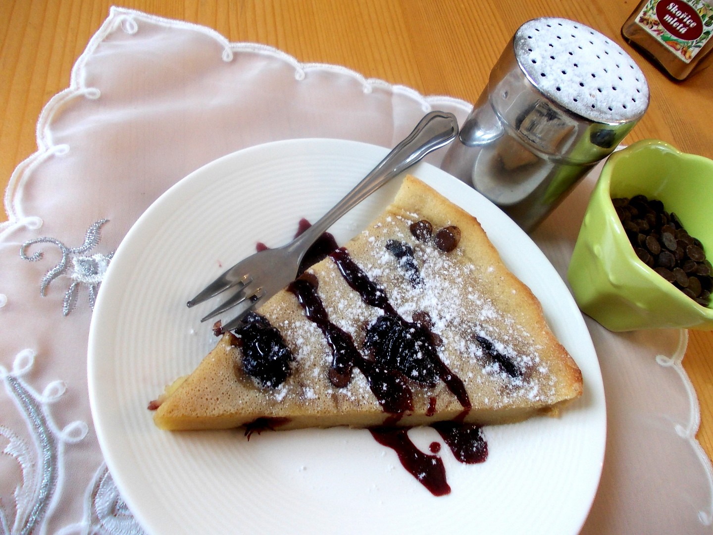 Podáváme nejlépe horké, ale i studené, moučník je výborný s crẻme fresh, zakysanou smetanou nebo šlehačkou.