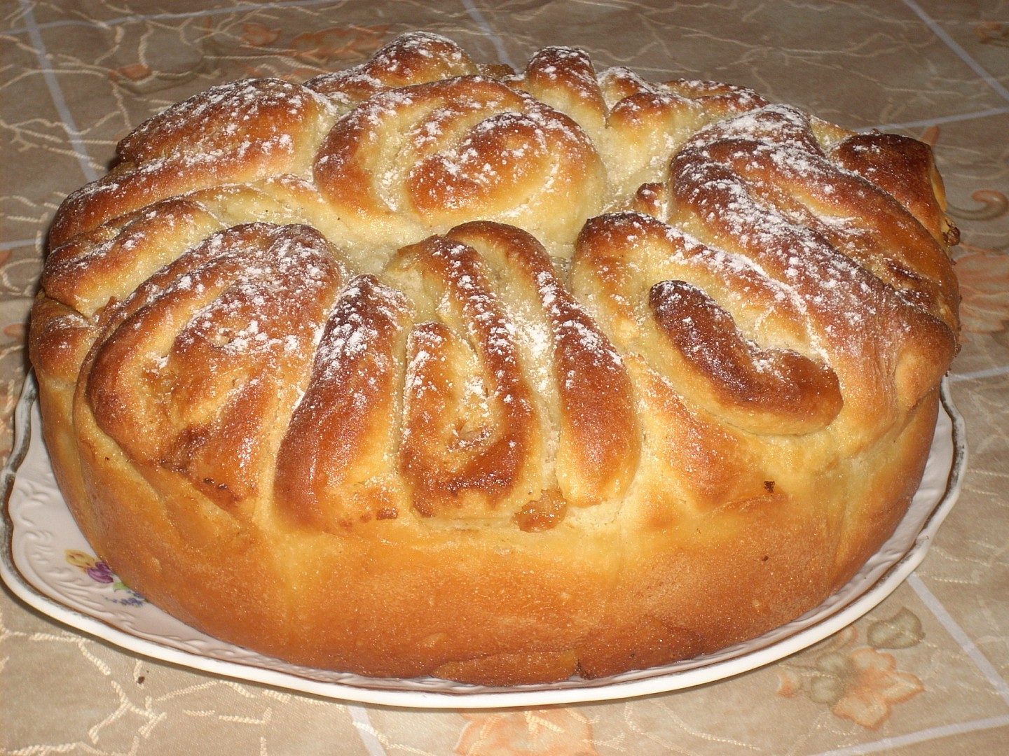 Ideálně můžeme připravit i péci v domácí pekárně. Závin pak svineme na délku jen 20 cm a přeřízneme jen napůl. Vzhledem k tomu, že buchta dost nabyde a špatně se pak krájí, je lepší jí v pekárně dělat jen z polovičního množství.