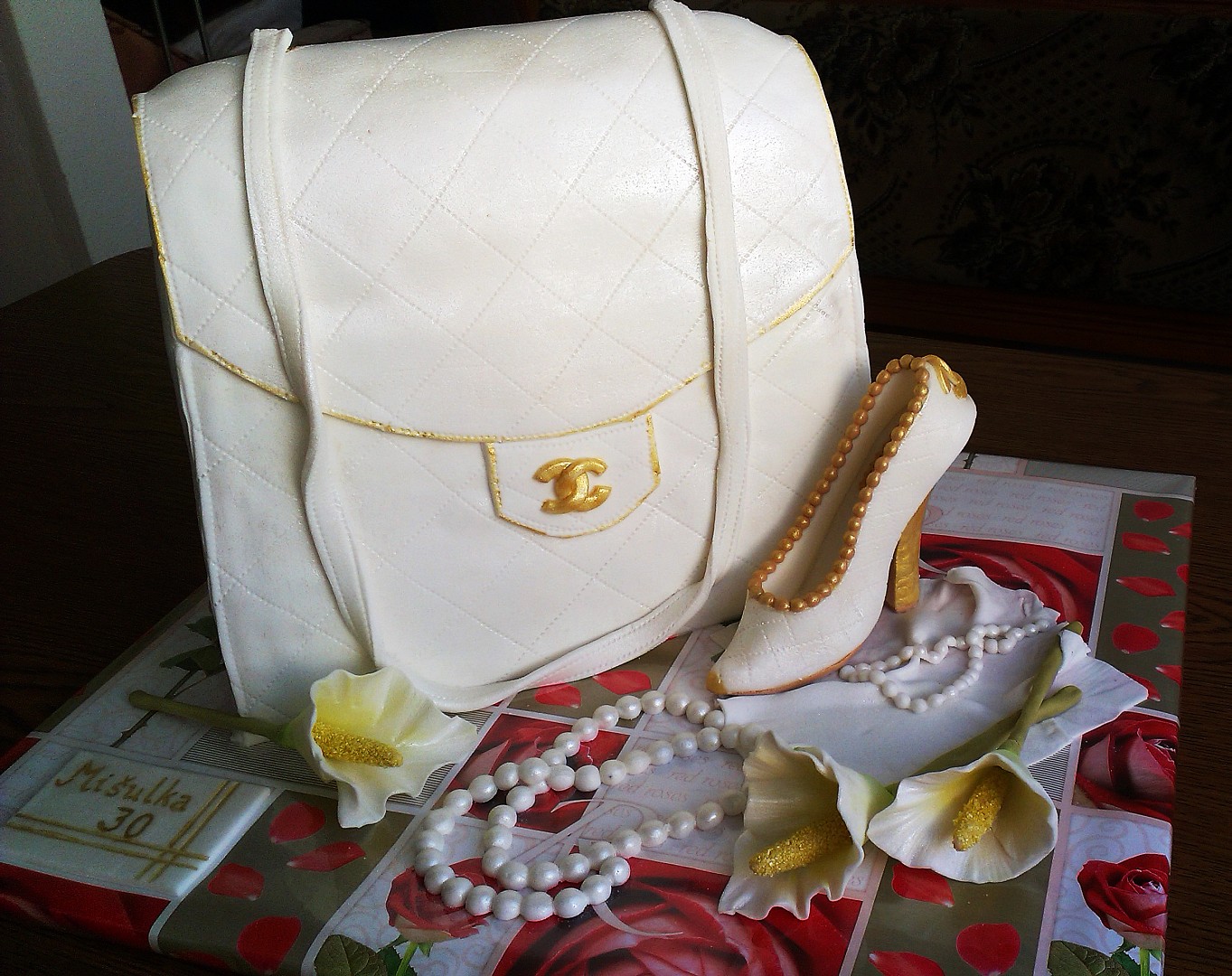 Naskládala jsem je na sebe, potřela krémem a džemem z černého rybízu, dotvarovala a dokrájela do tvaru kabelky.