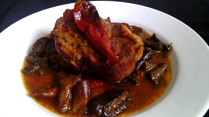 Do pekáčku vymazaného sádlem dejte krkovičku dostatečně okořeněnou solí, pepřem a divokým kořením (dle vaší chuti), přidejte fefe, hřiby, podlijte silným vepřovým vývarem a přikrytou dejte do trouby vyhřáté na 220°C.