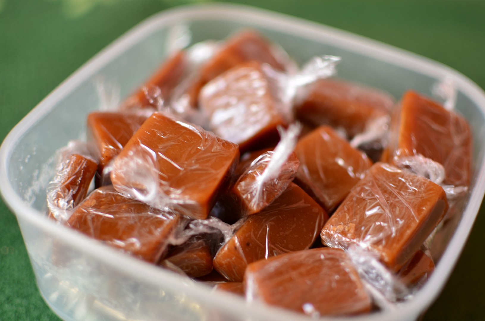 Až bude celá směs tvrdá, nakrájíme (buď naolejovaným nožem, či krájítkem na pizzu) na kostičky či obdélníčky. Nakrájené karamely jednotlivě balíme do pečícího papíru či potravinové fólie.