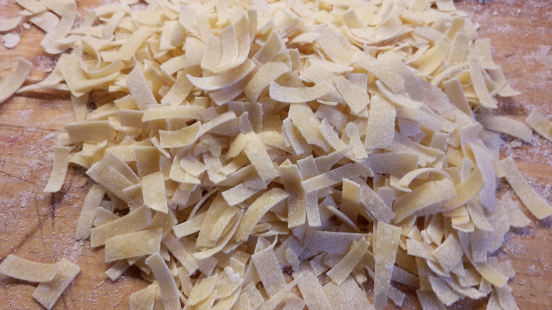 Nakrájíme širší nudle, které je možné použít jako klasické těstoviny (s mákem/cukrem/tvarohem).