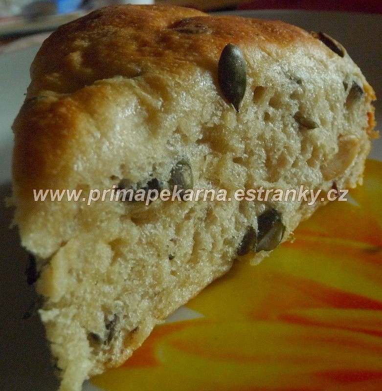 Můžeme potřít vejcem, pospat dalšími dýňovými jádry a upečeme.