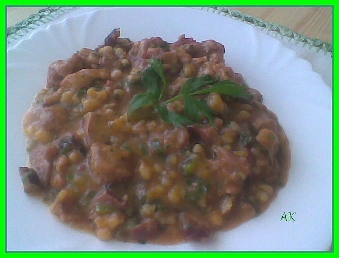 V ledničce jsem měla kousek uzené vepřové kotlety i s kostí, přidala jsem také a maso pak do směsi obrala.