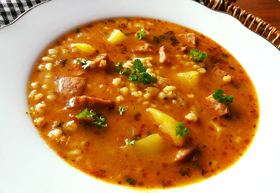Vaříme do změknutí krup i brambor. Polévku nemusíme zahušťovat, kroupy to zahustí. Stačí jen dochutit majoránkou, případně utřeným česnekem nebo chilli a pepřem.