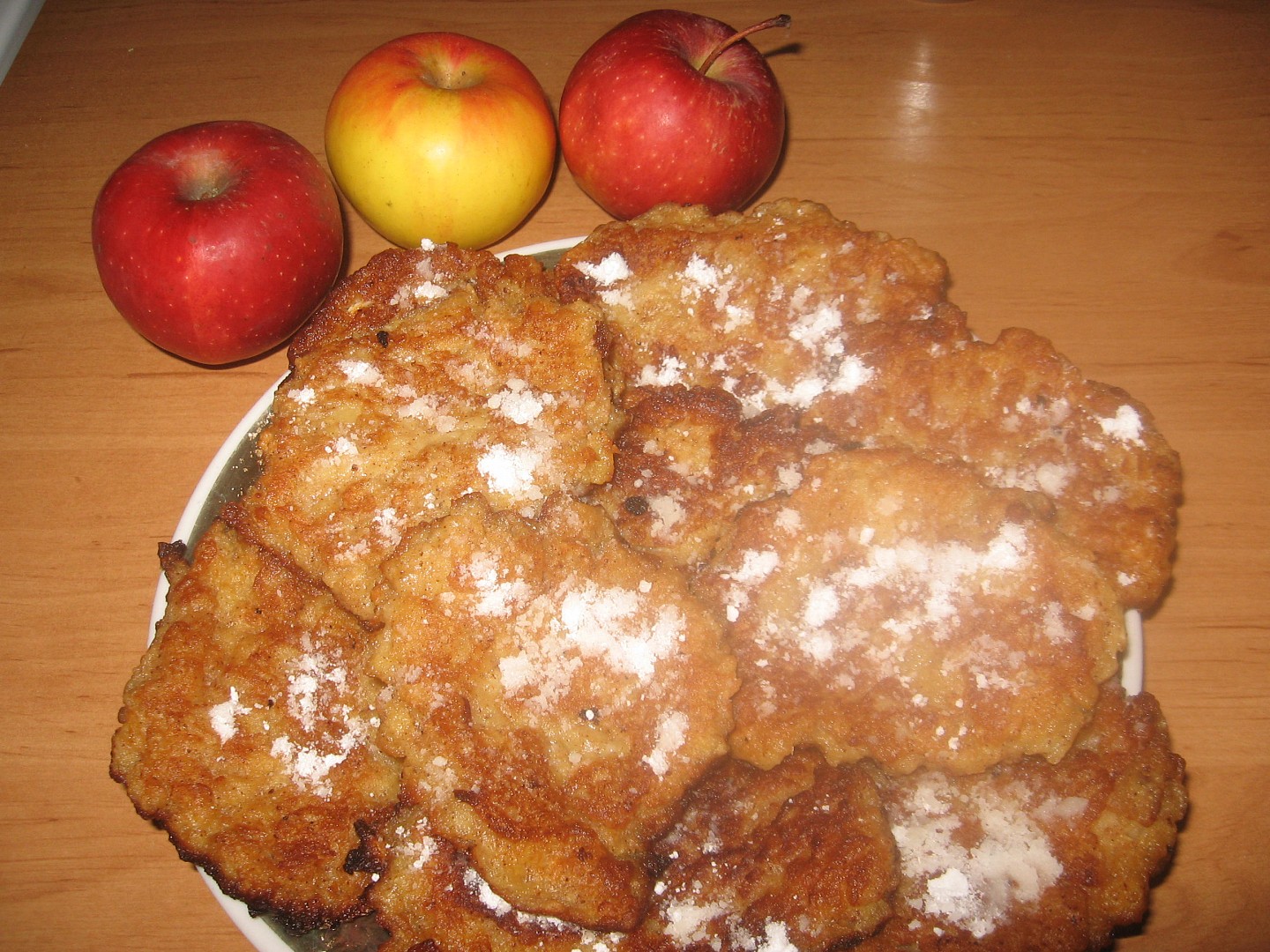 1. Nejprve si oloupeme jablka a poté je nastrouháme na hrubém struhadle. Pokud jsou příliš šťavnatá, tak je vymačkáme. Dáme je do misky, přidáme skořici, vejce, cukr a strouhanku podle potřeby na zahuštění a umícháme hladké těstíčko.