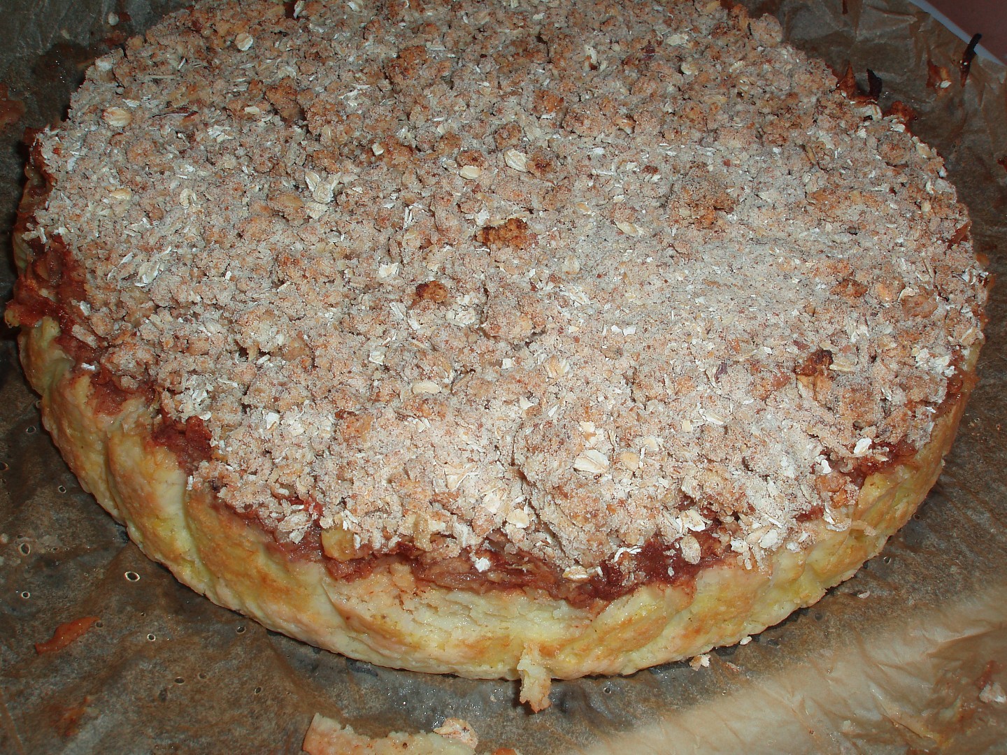 Na jáhlový korpus klademe nastrouhaná jablka smíchaná se skořicí.
