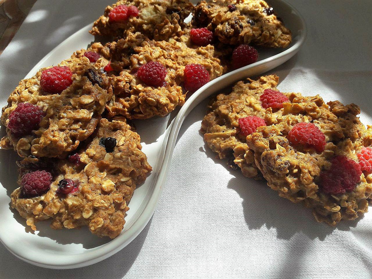 Na plech dáme pečící papír a pomocí dvou lžiček děláme malé hromádky. Pečeme na 180°C, cca 15 minut, dokud lehce nezezlátnou.
