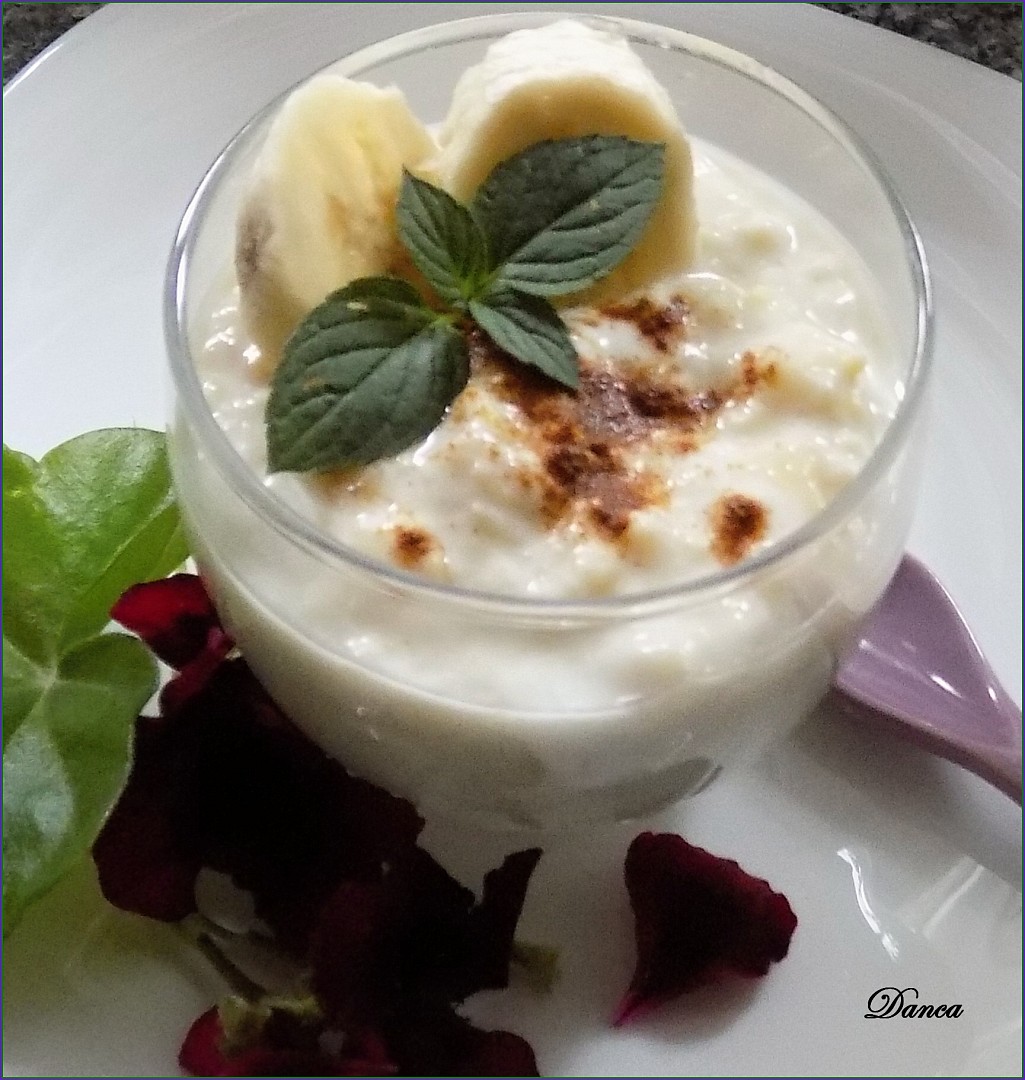 Můžeme dát ještě do lednice vychladit, ale pokud máme studený jogurt i jáhly, není to třeba. Jemně posypeme skořicí nebo kakaem, přidáme plátek banánu a lístek máty a podáváme.