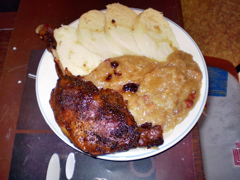 Plech zakryl alobalem a uložil k odpočinku do sklepa. Za ranního rozbřesku jsem vyběhl i se všema třema hafanama na procházku, stavil se na tržnici, kde zakoupil kysané zelí… Po návratu domů jsem ještě skočil na kolo a vyrazil pro knedlík… ještě jsem se ho nenaučil, no..