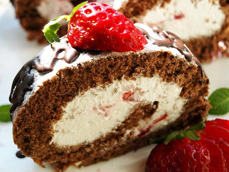 Kakaová roláda s jahodovou šlehačkou