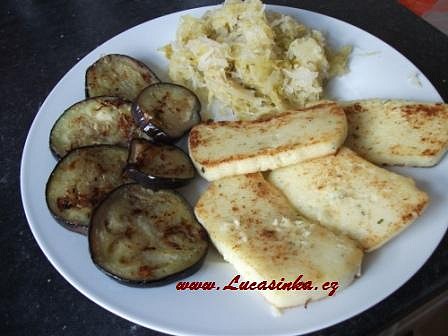 3. Polentový knedlík vyklopíme z formy a pokrájíme na asi 0,5 – 1 cm plátky, které osmahneme na stejné pánvi jako lilky. Podáváme s kysaným zelím, které můžeme ale nemusíme prohřát.