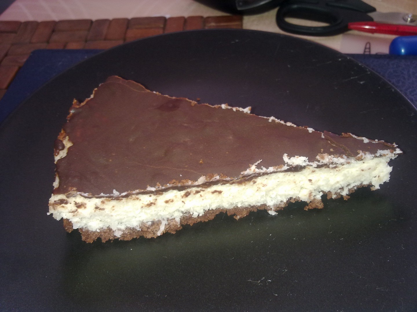 Po vychladnutí polijeme čokoládou ( rozpustit tuk nad parou a do něj rozpustit čokoládu ).
