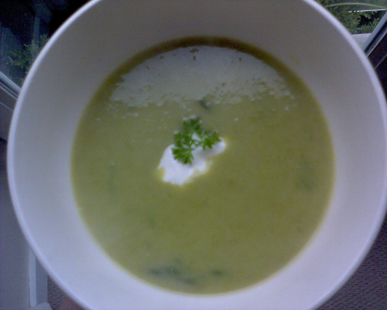 Vse rozmixujeme, do kremu vhodime spicky chrestu a jeste 5 minut povarime. Na talir podavame s kopeckem zakysane smetany a posypane petrzelkou.
