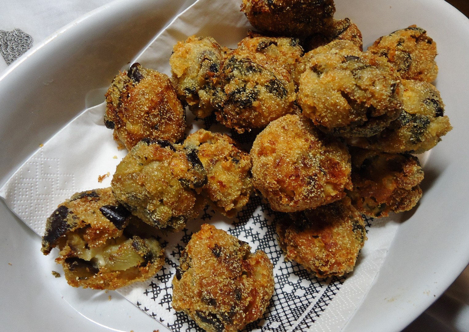 3. Z ní děláme kuličky, které obalíme ve směsi instantní polenty, hrsti strouhánky a trošky sušeného česneku a smažíme na oleji dozlatova.
