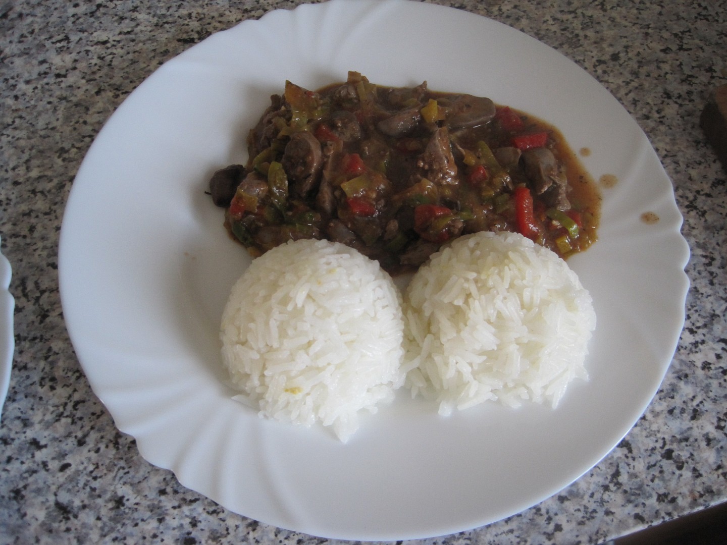 Na závěr přidáme česnek, asi 2-3 lžičky protlaku a dle chuti osolíme. Podáváme s rýží.