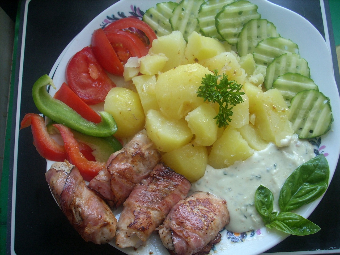 Kuřecí závitky s omáčkou z modrého sýra.
