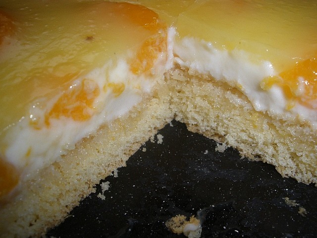Krém: všechno smícháme a našleháme. Na vychladlý piškot rozetřeme krém, na něj rozložíme okapané mandarinky.
