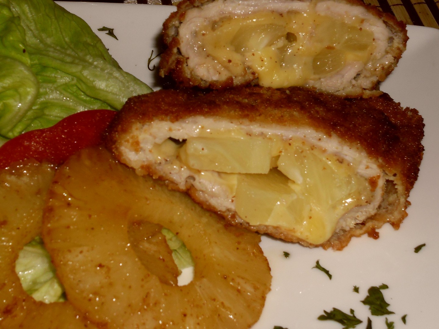 Poklademe sýr, ananas, přehneme a kraje spojíme párákem.