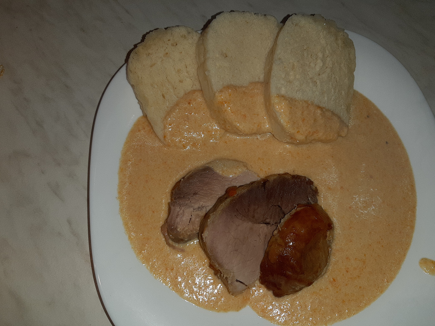 3. Vyjmeme maso, zeleninu propasírujeme (je barbarství na svíčkovou používat mixer). Zalijeme smetanou, provaříme, popřípadě zahustíme moukou, rozmíchanou ve vodě. Dochutíme.