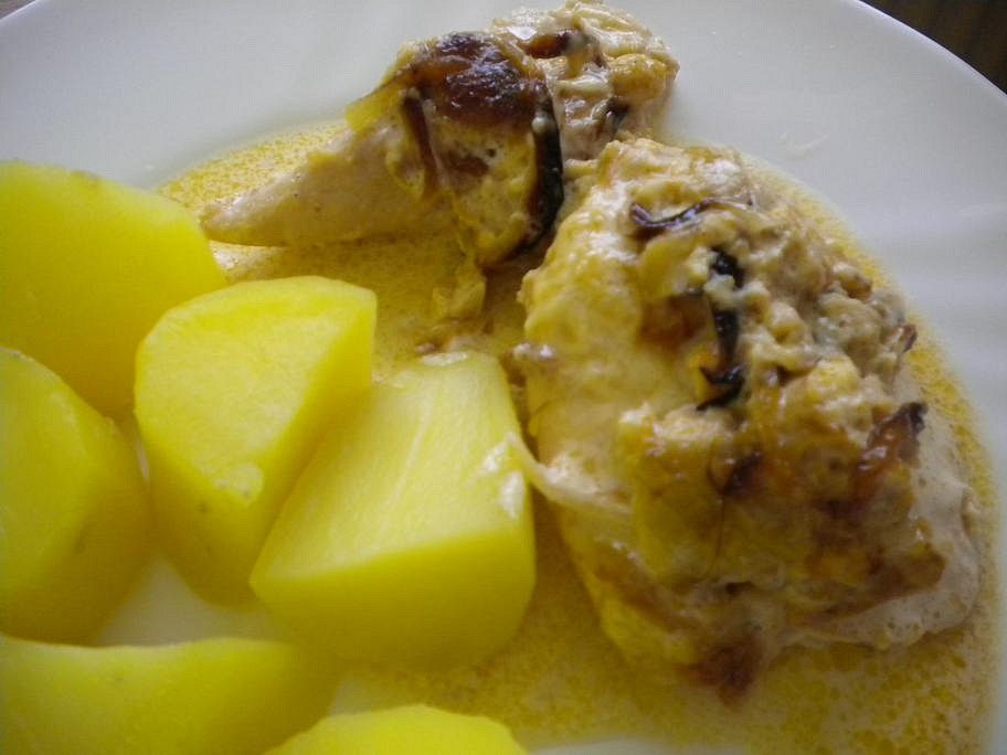 Kuřecí prsa nakrájíme na plátky, jemně osolíme a vložíme do připravené kaše a dáme na pár hodin odležet do chladna.