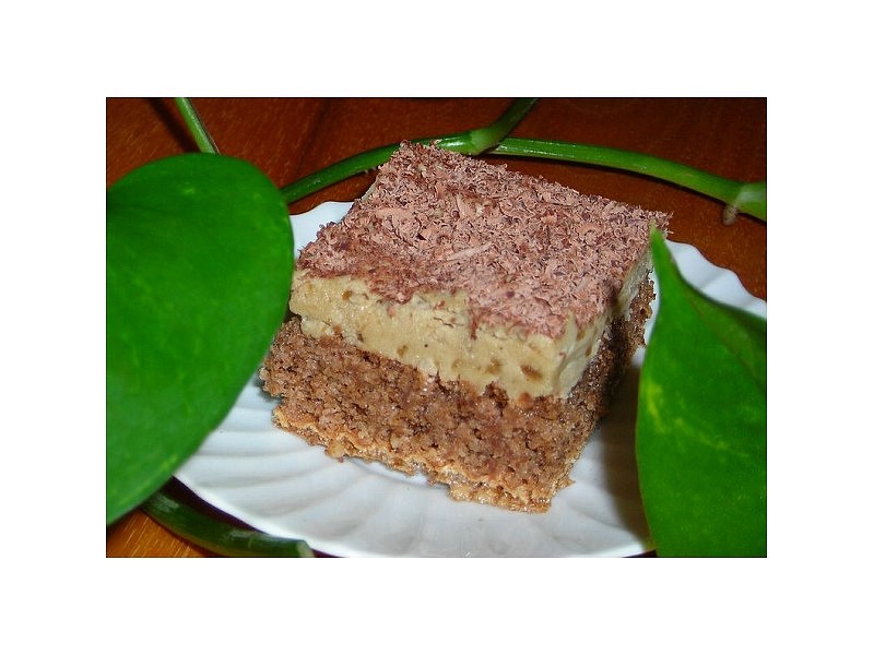 Rozetřeme na oplatky a upečeme v mírné troubě. Po vychladnutí potřeme vrstvou krému. Máslo ušleháme s cukrem a postupně vmícháme i kávový pudink.