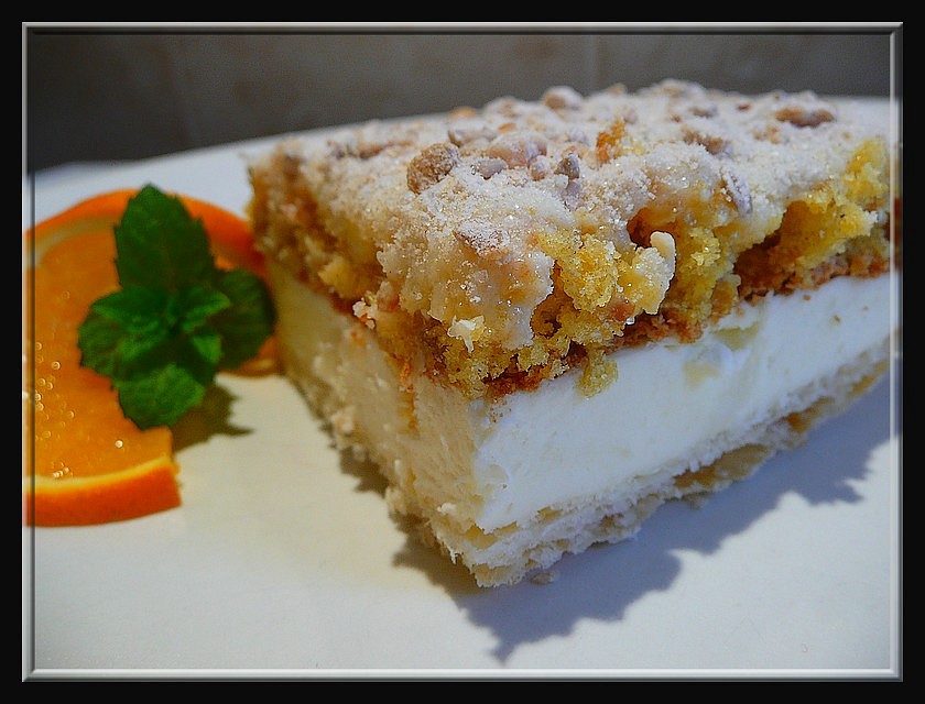 Na vychladlé listové těsto rozetřeme kokosový krém, naneseme upečenou piškotovou placku, nalijeme polevu a posypeme ořechovou směsí. Dáme vychladit a nejlépe odležet do druhého dne.