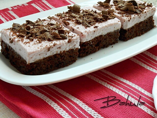 Potom nakrájíme a posypeme čokoládovými hoblinami.