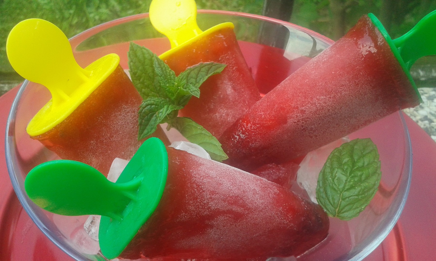 Necháme dobře zamrazit. Tím, že ta voda je perlivá ovoce neklesne na dno a drží se v celém nanuku.