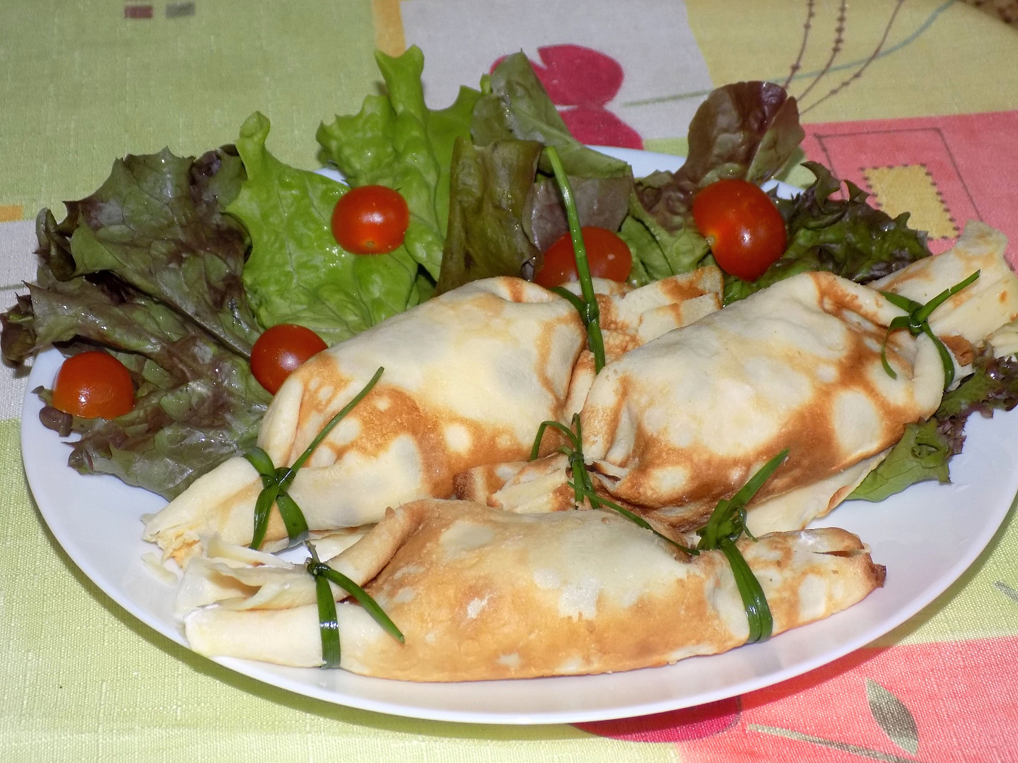 Lučinu premiešame s nasekanou pažitkou a potrieme ňou šunku a stredy palaciniek.
