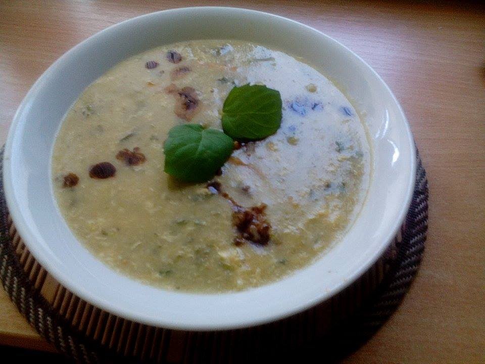 Nakonec vmícháme do polévky rozkvedlaná vejce a dovaříme. Do uvařené polévky dáme jemně posekané zelené natě (petrželka, cibulka…), rozporcujeme na talíře a pokapeme tmavým octem. Jako top můžeme dát lístky máty, dobře lsdí chuťově s polévkou a tmavým octem. Polévku můžete i procedit.