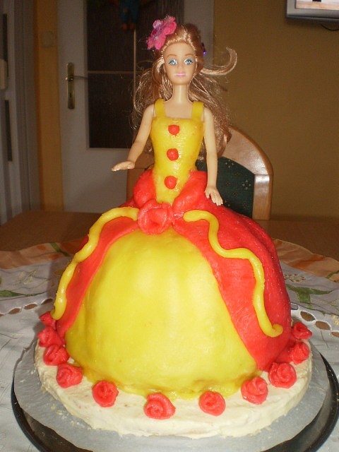Nechat ztuhnout, do středu umístit panenku(nožky obalit potravinářskou fólii) a dle fantazie potáhnout marcipánovou hmotou připravenou dle: http://www.toprecepty.cz/recept/8238-marcipanova-hmota—varna/