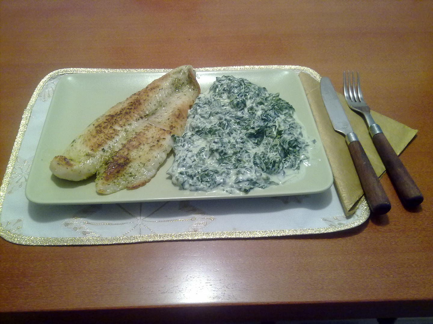 Na pánvi rozehřejeme lžičku olivového oleje a přidáme špenát, česnek a špetku soli, podlijeme cca 3dcl vody a dusíme do měkka. Na konci dušení přidáme smetanu a prohřejeme.