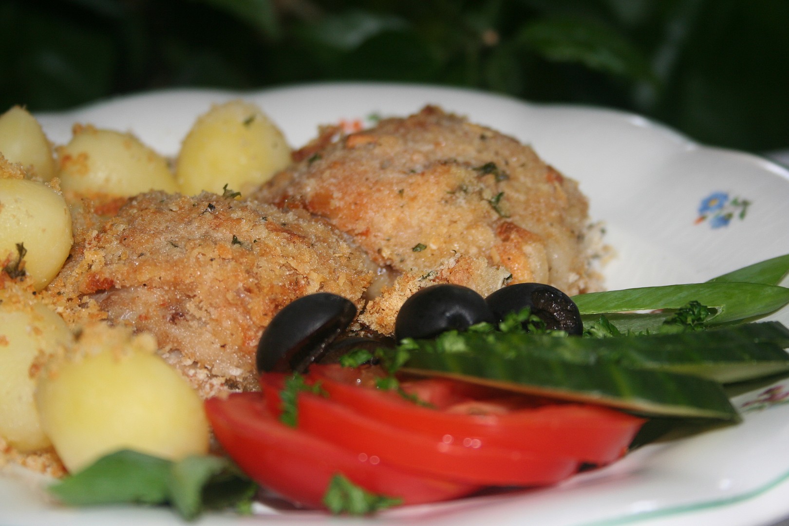 Ze strouhanky, parmazánu, petrželky a koření připravíme sypkou obalovací směs.