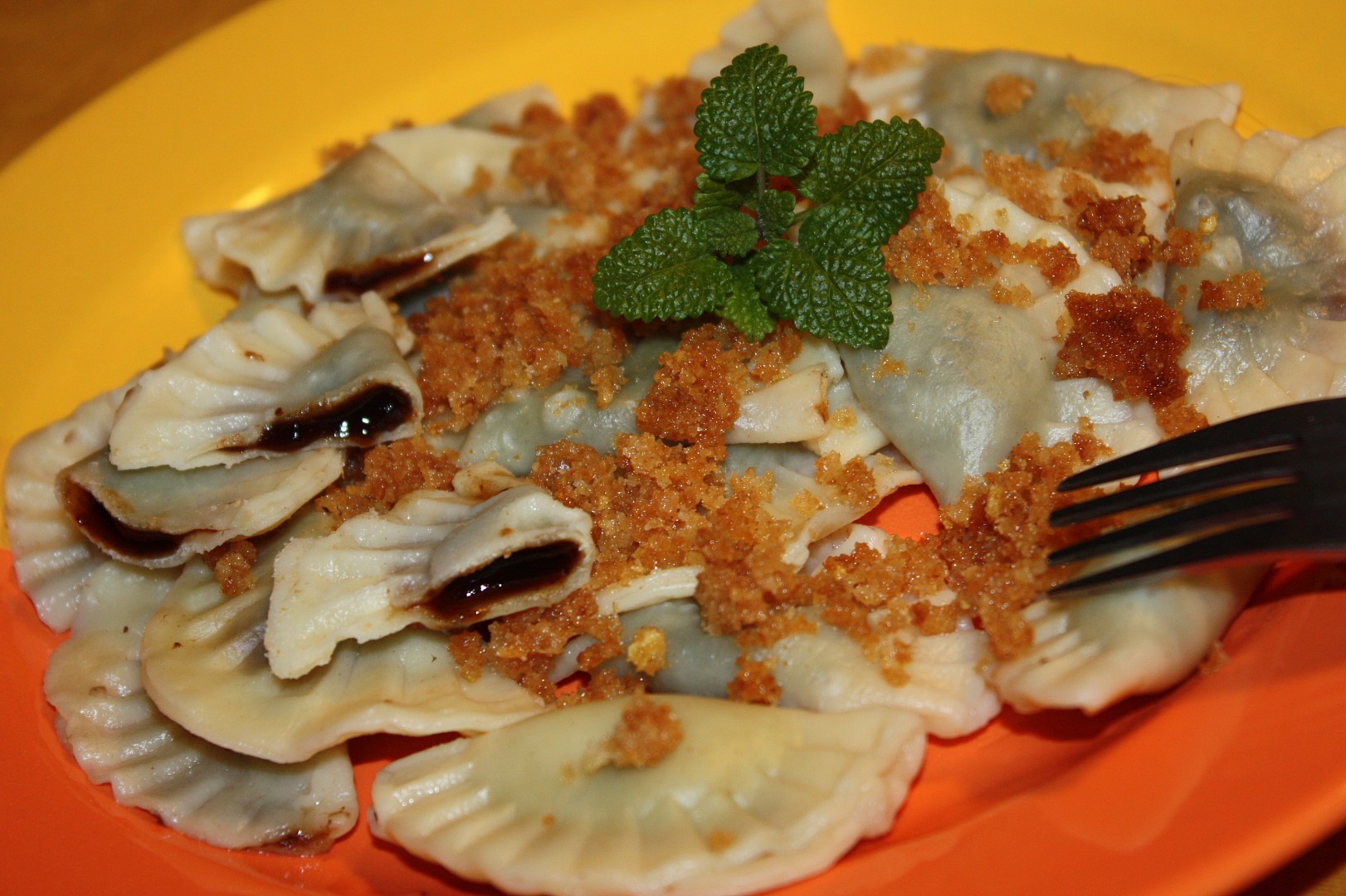 5. Hotové taštičky podáváme s osmahnutou strouhankou a přelijeme máslem.