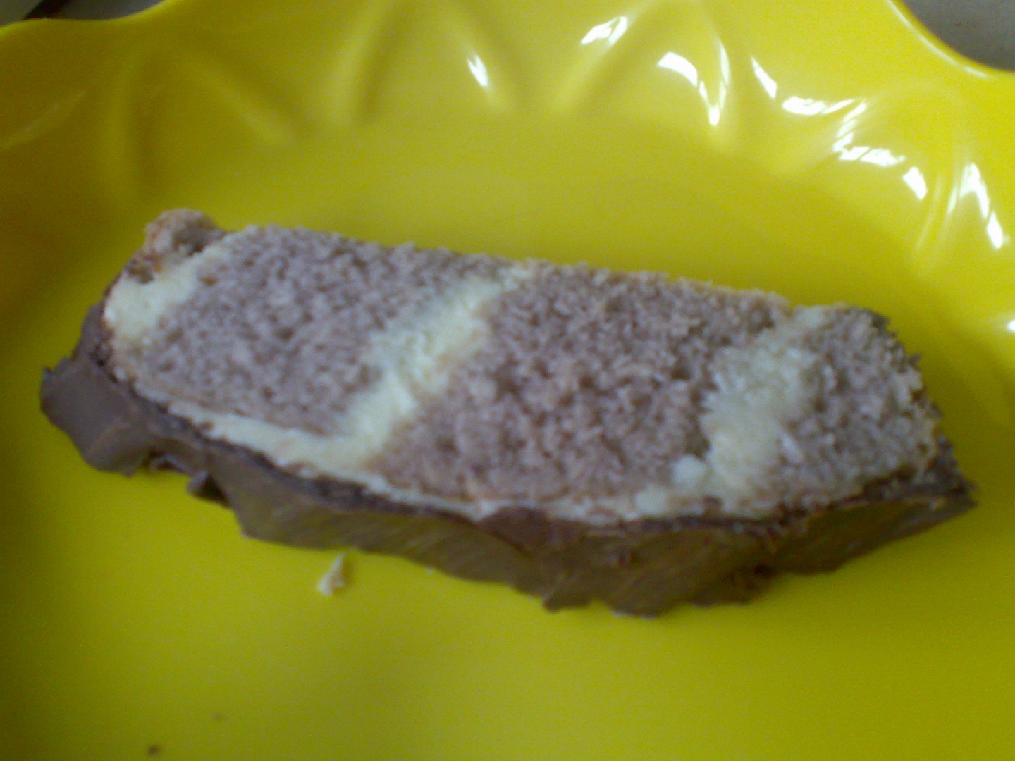Upečený chlebíček nakrájíme na tenké plátky a každý potřeme vrstvou krému,a slepíme dohromady. Nakonec polijeme čokoládovou polevou a dáme ztuhnout do lednice cca na 2 hodiny. Hotový chlebíček krájíme šikmo na řezy.
