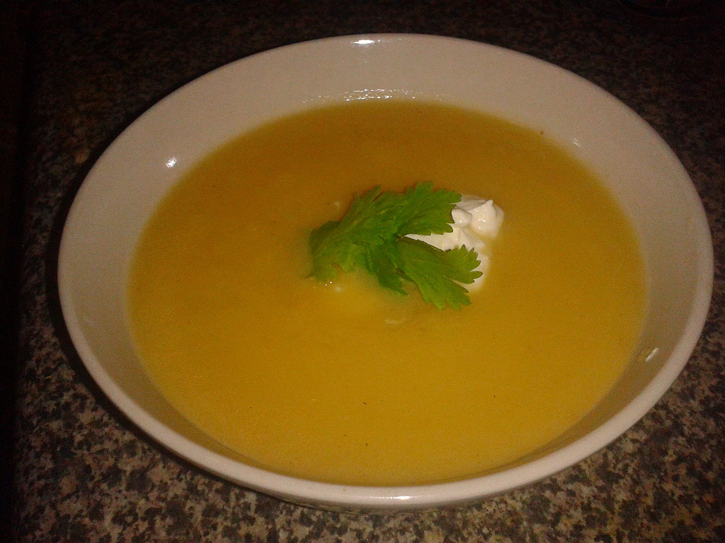 Nakonec dýni rozmixujte a přilejte zbylý vývar dle potřeby. Dochuťte solí a pepřem. Podávejte se lžící řeckého jogurtu (a také můžete polévku posypat osmaženou červenou cibulí).
