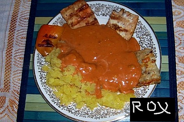 Zalijeme ji po částech mlékem, vymícháme dohladka, přidáme rajčatový protlak, masox, kečup, je možno i trošinku sladké sojové omáčky. Omáčku povaříme při mírné teplotě asi 10-15 minut.
