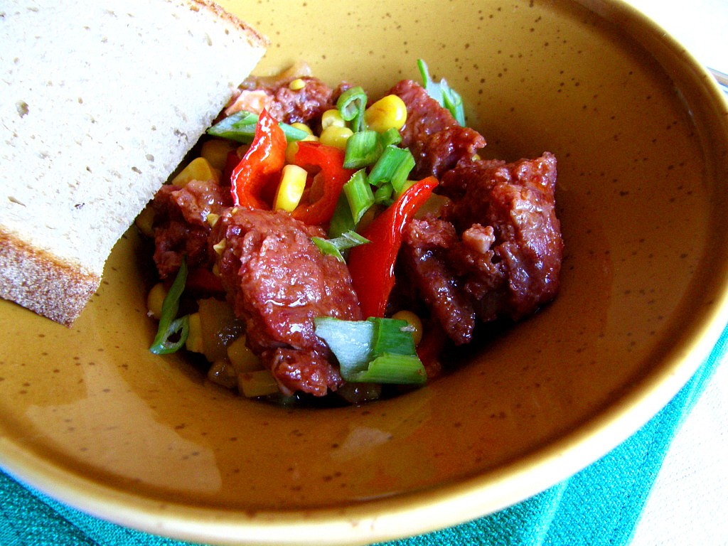 Vmícháme kukuřici s kečupem, prohřejeme a podáváme. Příloha – těstoviny, rýže, brambory.
