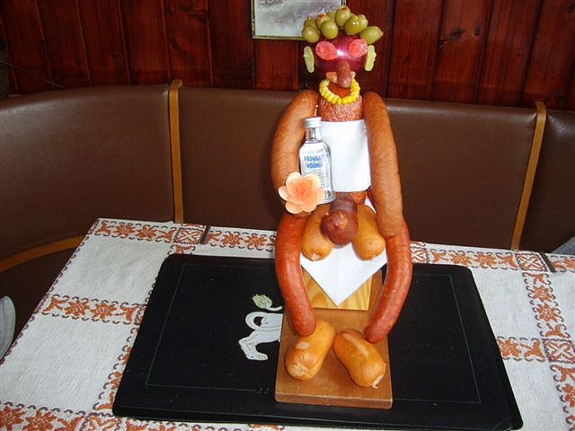 1. Židlička je ze dřeva… na ní vysočina… a špejlema připíchané ručky, nožky a … hlava je z cibule.
