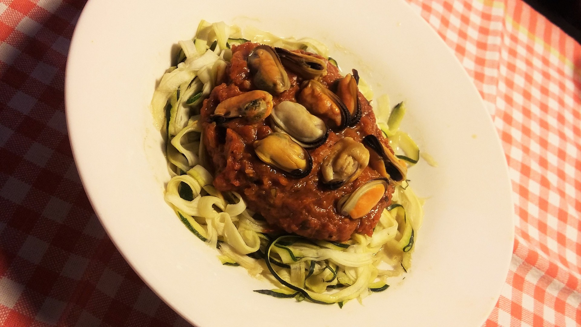 Nejprve připravíme špagety. Cuketu nastrouháme pomocí spiralizéru nebo spirálového kráječe na zeleninu na libovolně široké nudličky. Osolíme, zastříkneme balzamikem a důkladně promícháme. Udložíme v uzavíratelné nádobě minimálně na hodinu (ideálně i déle) do lednice, aby cuketa pustila šťávu a všechny chutě se prolnuly.