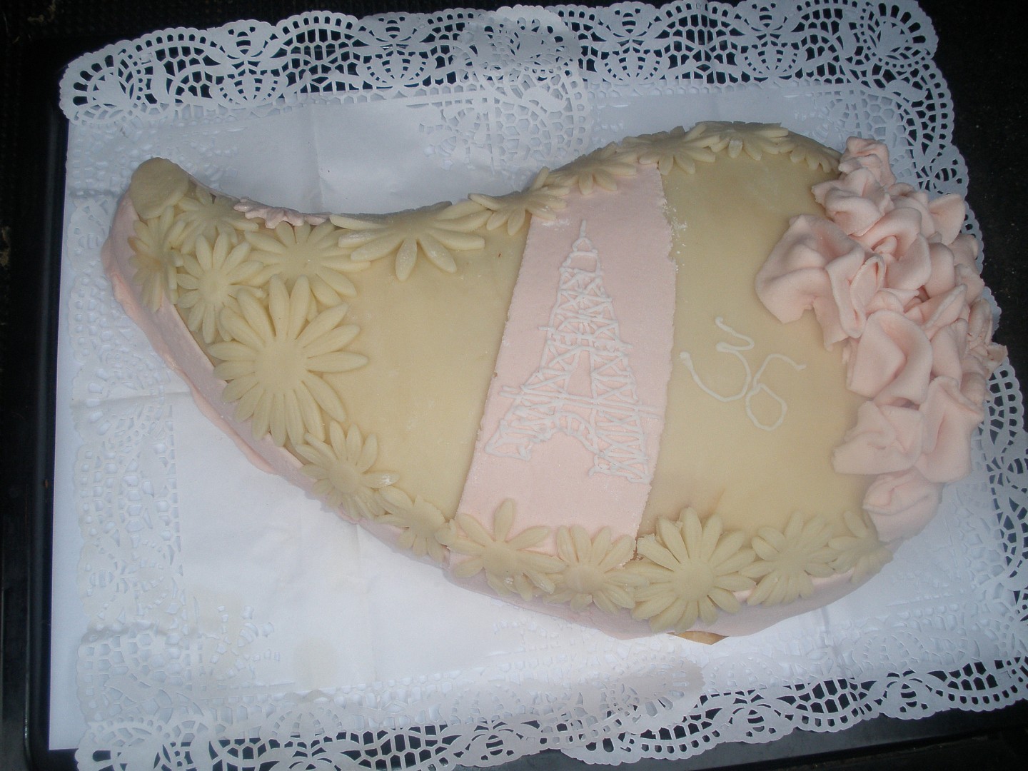 Korpus upečeme dle receptu. Promažeme krémem a potáhneme hmotou. Nakonec si pomocí tvořítek květin vykrojíme ozdoby, které vložíme za pomocí bílku či kapky vody na dort.
