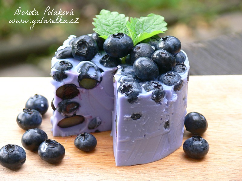 Tento postup opakujeme, až bude forma plná. Po ztuhnutí smetanový dortík opatrně vyndáme z formy a dozdobíme borůvkami a snítkou meduňky. Dobrou chuť. Tip: Pro rychlejší tuhnutí vložte formičku se směsi vždy na chvíli do mrazáku.