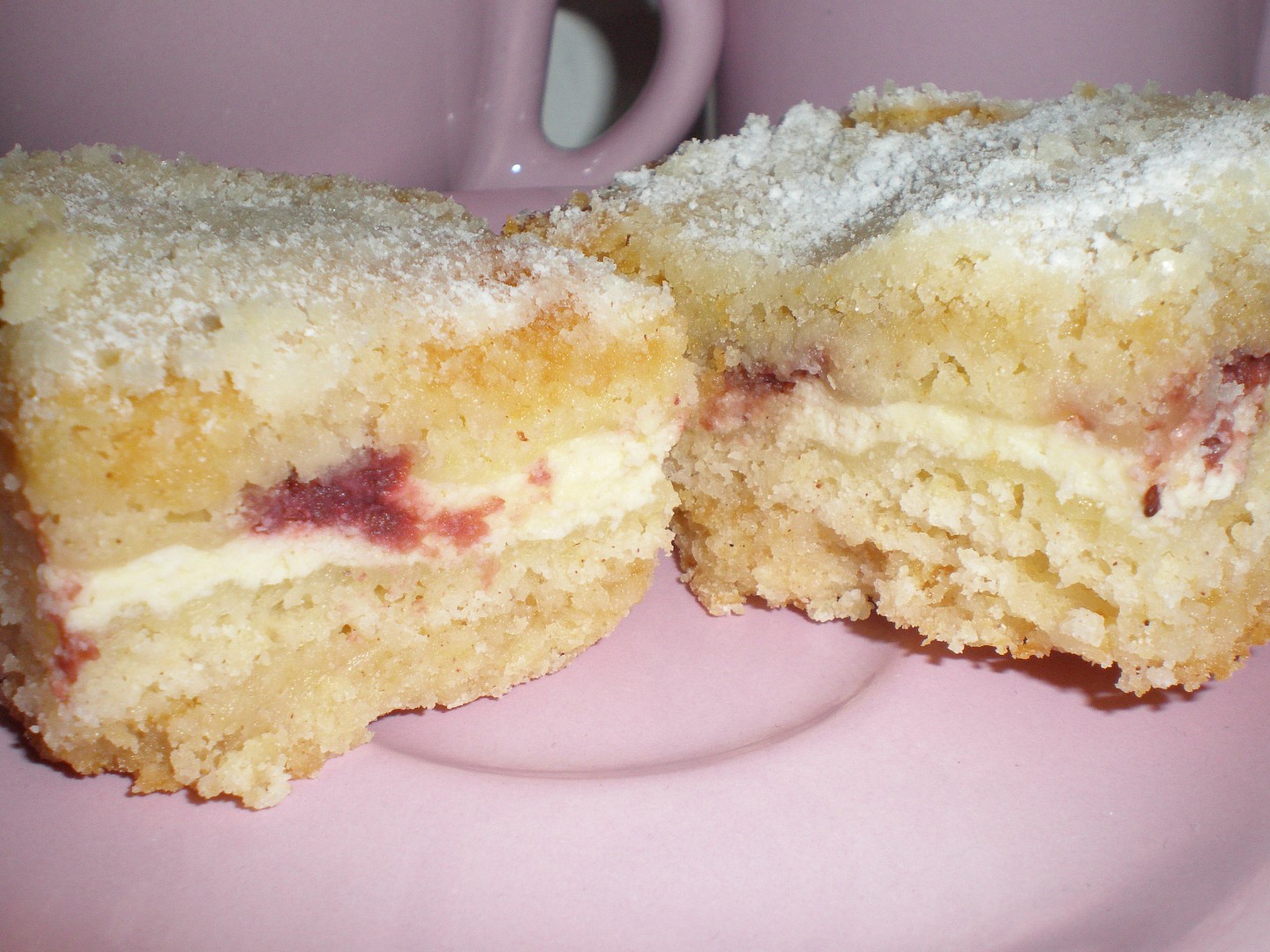 Polovinou změklé Hery vymažeme pekáč, nasypeme polovinu sypké směsi, na to rozdělaný tvaroh, na něj okapaný kompot a druhou polovinu sypké směsi.